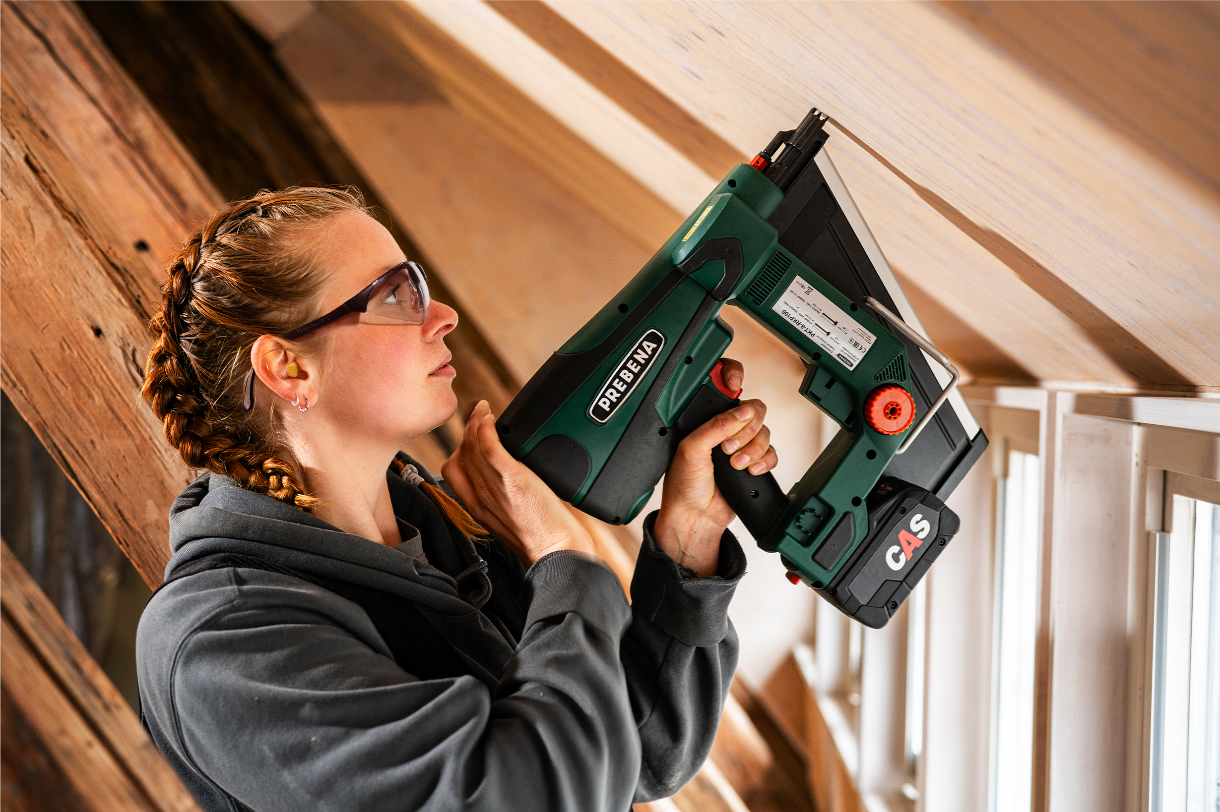 Starting with the 4 mm upholsterer's staple up to the 160 mm carpenter's nail: With PREBENA's wide range of products, you can solve any fastening problem, both stationary in the workshop and hose-free and wireless on the construction site! Please also note our current promotions and offers for used devices - you are guaranteed to always find a suitable bargain here!