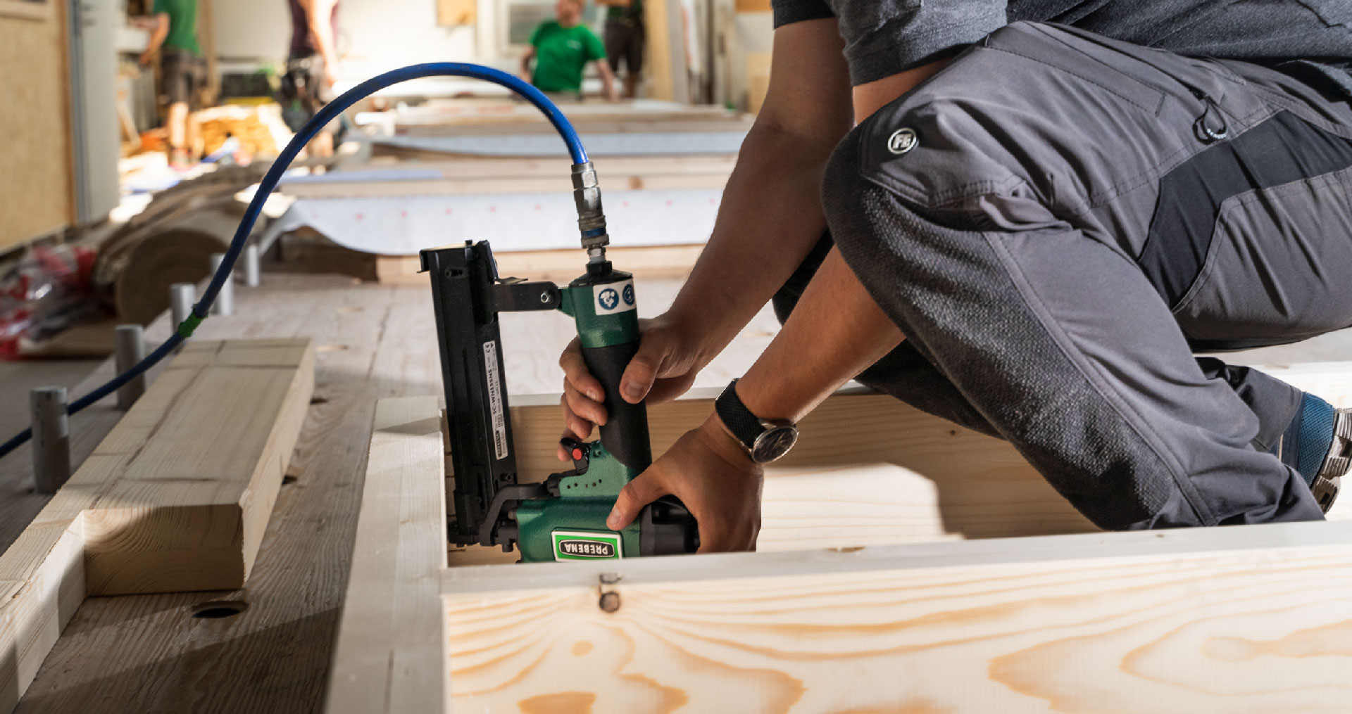 Master craftsmanship with quality tools and compressors from PREBENA – Made in Germany! Here you will find all professional devices for hard or soft wood with a service life of up to 3 million shots (see Optiwear Technology) and the associated fasteners with or without ETA approval, the extensive range of accessories with hose reels, fittings and special oil as well as the first-class range of spare parts with exploded drawings to every nailer or compressor!