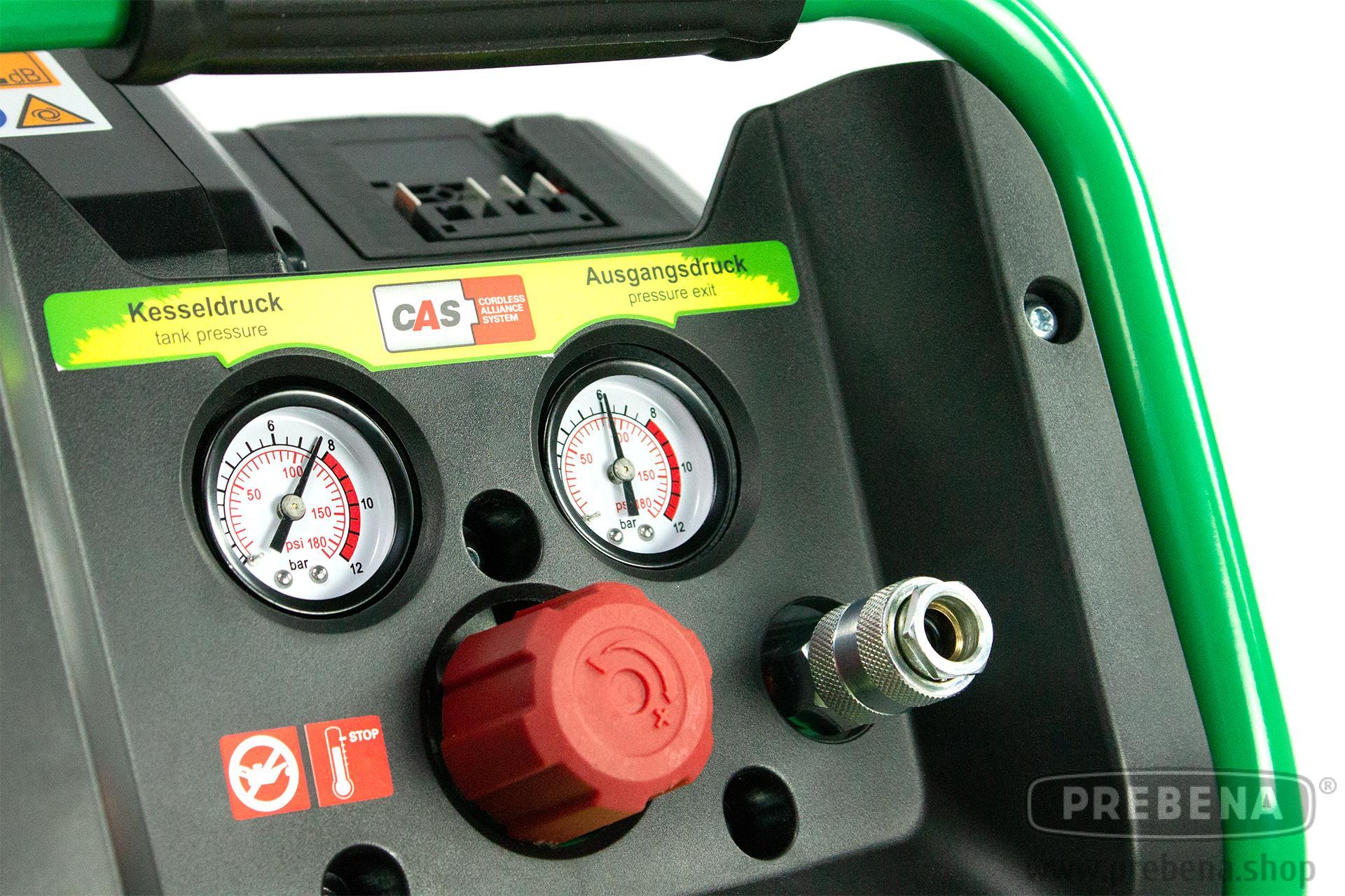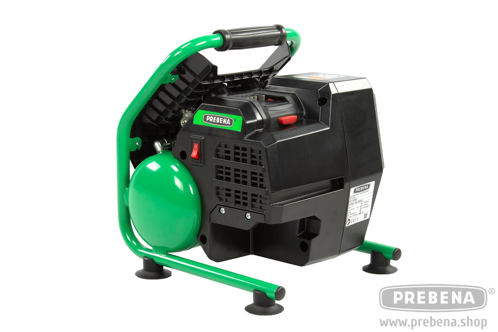 Druckluft für unterwegs: Der leichte und kompakte VITAS 100-AKKU 18-Volt-Akku-Kompressor mit Brushless-Motor und einem Maximaldruck von acht bar ist der perfekte Begleiter auf der Baustelle oder in der Werkstatt. Mit einem Gewicht von rund zehn Kilogramm und einer Größe von 330x310x390 Millimetern ist er einfach zu transportieren und steht mit seinen gummierten Standfüßen zu jeder Zeit sicher. In Kombination mit den PREBENA Druckluft-Werkzeugen ist der ölfreie Kolbenkompressor ideal für Arbeiten im Innenausbau, bei der Holzbearbeitung und im Sanitärbereich geeignet. Manometer für Kessel- und Ausgangsdruck und eine Universalkupplung für alle gängigen Anschlusssysteme garantieren eine einfache Bedienung.